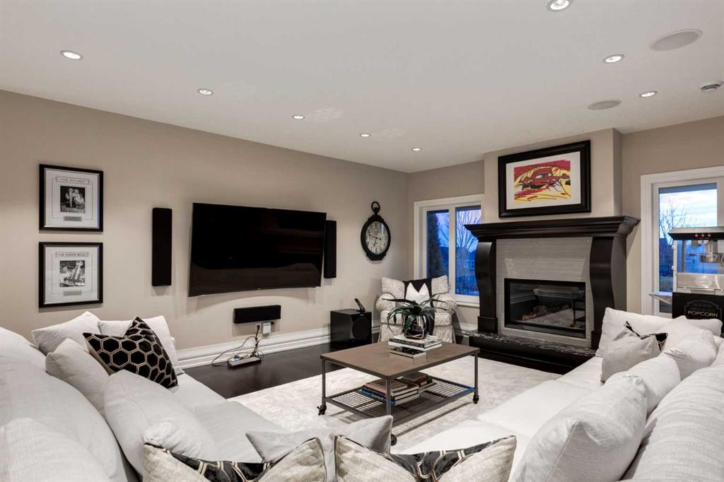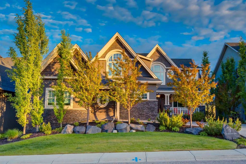UNDER CONTRACT. Experience the epitome of luxury living in this stunning 5-6 bedroom family residence located in the prestigious SW community of Springbank Hill. The location is outstanding backing onto a park with a playground and pathway system. The professionally landscaped yard features extensive Rundle rock gardens, flowering trees, magical vines growing up the fence-line and gigantic columnar Aspen trees. The sunny South deck is partially covered and boasts a wood-burning fireplace and expands across the entire South side of this beautiful home. Spanning nearly 6000 square feet of exquisitely curated designer space, this luxury home offers four bedrooms on the second level, a gourmet kitchen with top end appliances and finishes including a Wolf gas range, Sub Zero refrigerators, and leathered quartzite countertops. Start mornings off right in the butler's pantry featuring a built-in Miele espresso maker and the wine fridge makes entertaining friends and family a breeze. Enjoy sophisticated details like rich Acacia Walnut hardwood flooring, custom wainscoting, coffered and barrel-vaulted ceilings and two separate show stopping rooms meticulously designed by award-winning designer Paul Lavoie. This homes elevated custom build quality is evident from the millwork detailing to the incredible window designs to the unique polished nickel fixtures and hardware to the oval center stair feature to the solid core doors with Entek Crystal hardware. The primary suite boasts vaulted ceilings, a private seating area/dressing room, and a luxurious ensuite with heated porcelain floors, a large soaker tub, and double vanities adorned with stylish gray marble styled counters. Indulge in the lower-level walkout amenities that features a climate-controlled wine room next to the cutting-edge wet bar and a large, dedicated steam sauna room. Additional spaces to be found on the lower level include an additional bedroom, games room, and family media room. Fabulous upgrades you don't want to miss include Hunter Douglas motorized blinds, Smart home integration, and an in-floor radiant heated three-car garage. This is more than a home; it's a sanctuary of elegance and comfort. This superb family home can be found just minutes away from Calgary's top private schools, numerous trendy restaurants, and an abundance of shopping and day to day amenities that make life as convenient as possible!